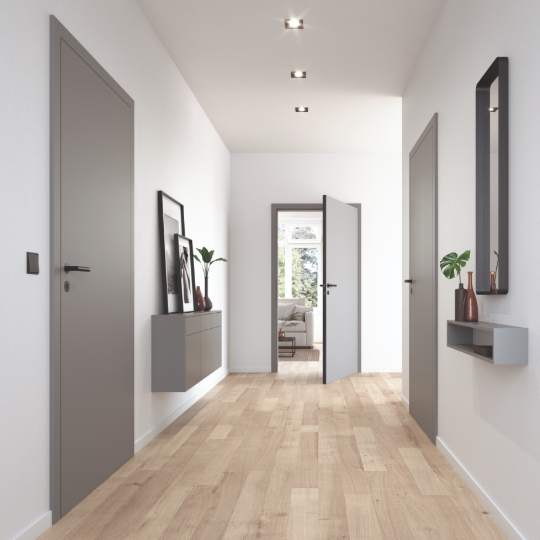 Szakmai tanács: Ne feledje, hogy a Hörmann beltéri ajtók utólag szerelhető tokkal érkeznek, így a beépítés tiszta, gyors és nem igényel kőművesmunkát a végkész falakon.