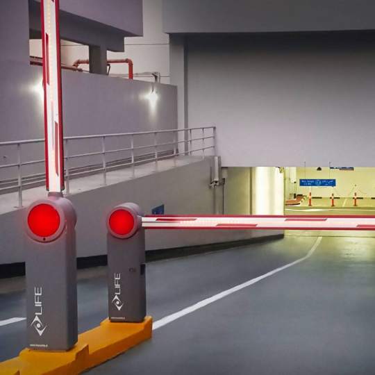 Design és Biztonság: Az integrált LED-villogók nemcsak az oszlop tetején, hanem a sorompókar mentén is elhelyezhetőek, így éjszaka vagy rossz látási viszonyok között is jól látható akadályt képeznek.